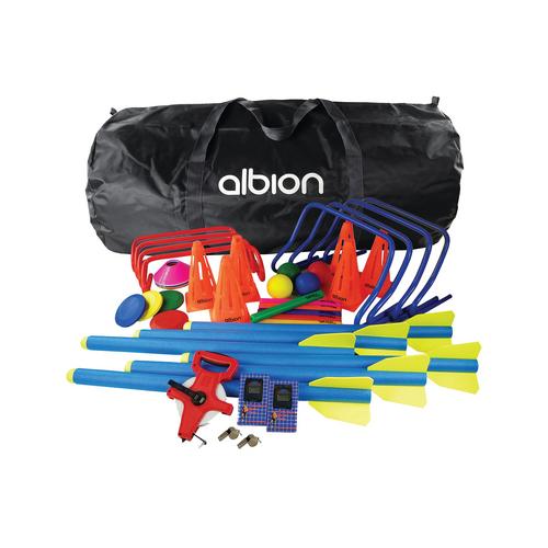 - Also contains 6 Pop Up Cones 9 Inch Fluorescent Orange, 25 Spacemarkers, 1 Measuring Tape ABS Open Frame 30m, 2 LCD Economy Stopwatches, 2 Large Brass Whistles and 1 Albion Team Holdall